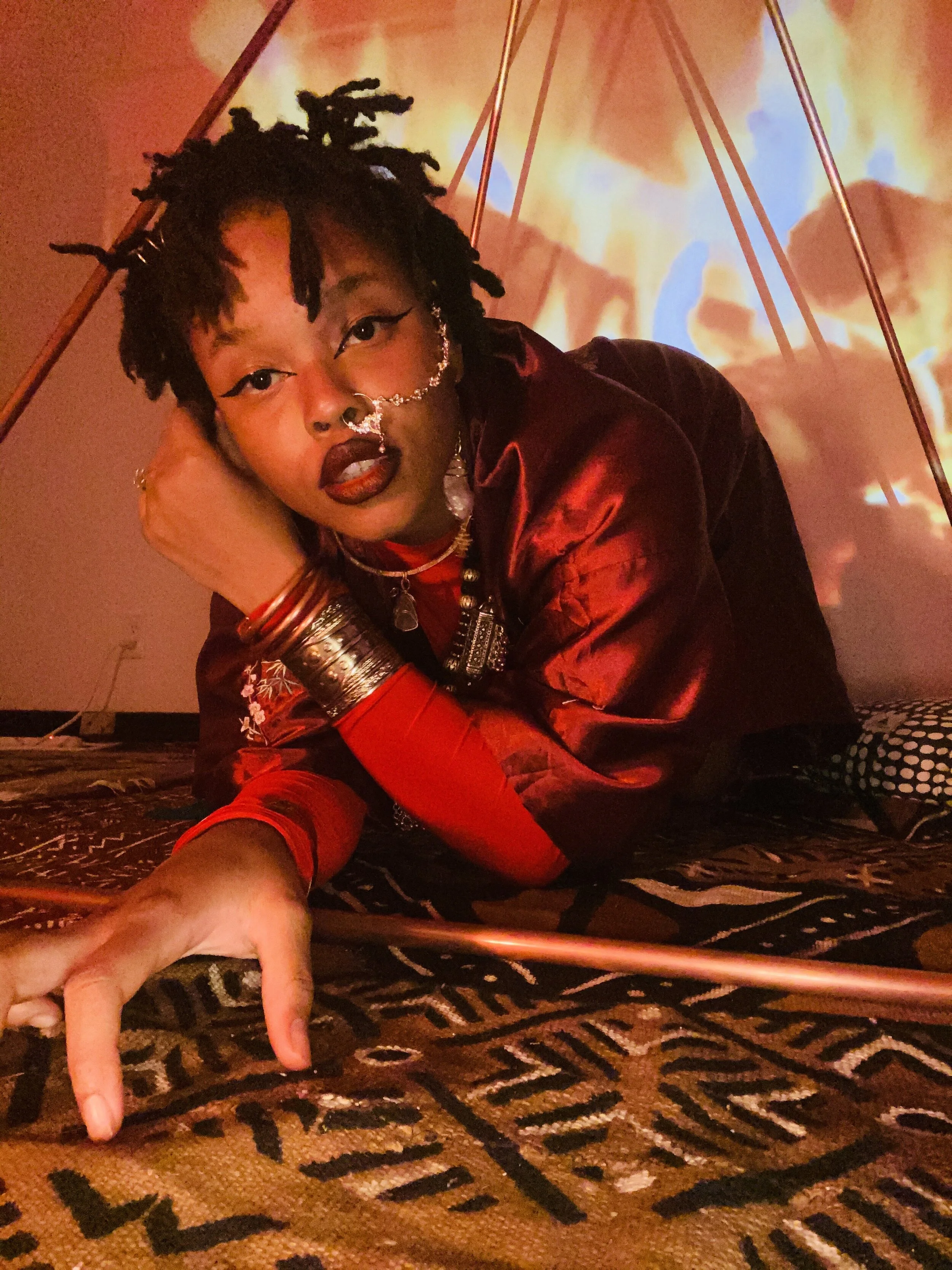 Kris Lee/Mellowbastard (Philadelphia). Kris is a performer and Dj. Her work is deeply connected to the liberation of self and the preservation/ progression of AFRO____. “ @mellowbastard on Instagram.